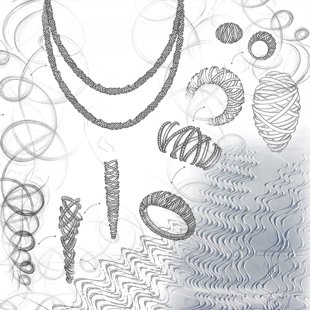 The creative process of each jewelry collection starts months in advance and is led by Kika PRETTE. She and her creative team imagine a universe around a particular theme; always relevant to APM brand identity. The thought process is then materialized onto a mood board which is constantly in progress.