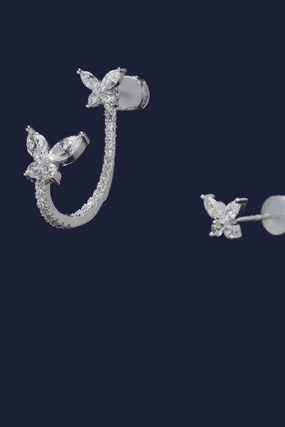 These asymmetric earrings are handcrafted from sterling silver and paved with white cubic zirconia.