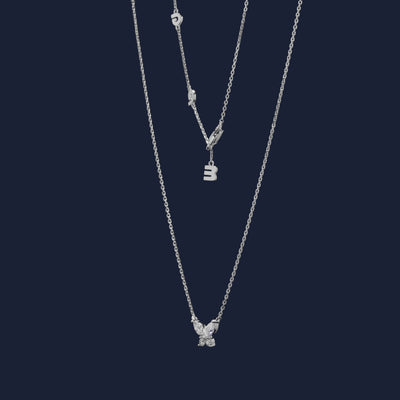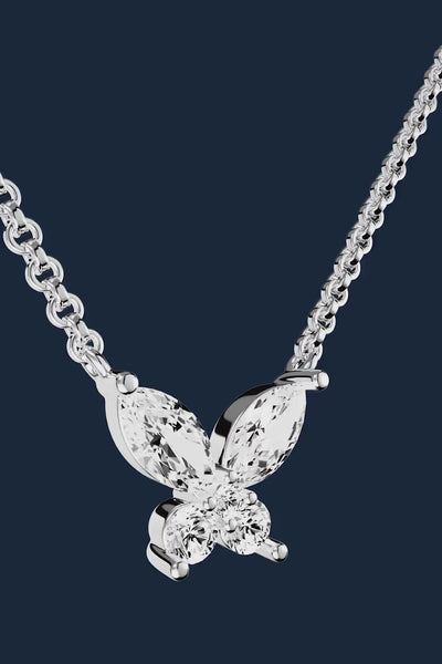 This butterfly necklace is handcrafted from sterling silver and paved with white cubic zirconia. Adjust the necklace length by hooking the closure between the a, p or m letters.