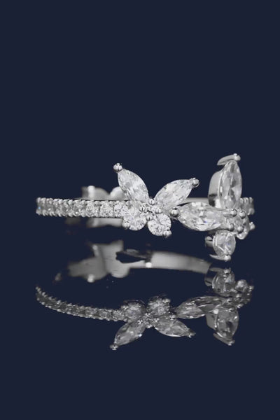 This ring is handcrafted from sterling silver and paved with white cubic zirconia.
