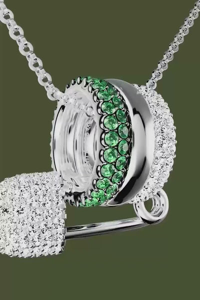 Inspired by the classic safety pin, this necklace combines fashion and sparkles with the layered design.