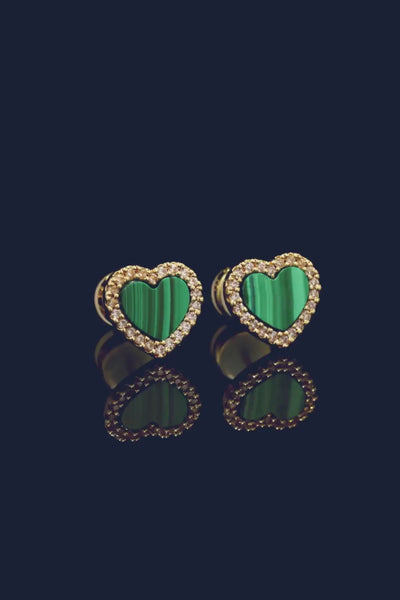 Malachite Heart Stud Earrings