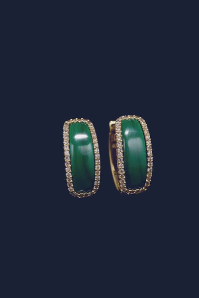 - Material: APM Yellow Alloy made of 95% recycled material and 18k gold plated, white cubic zirconia, malachite, anti-tarnishing and anti-allergic
