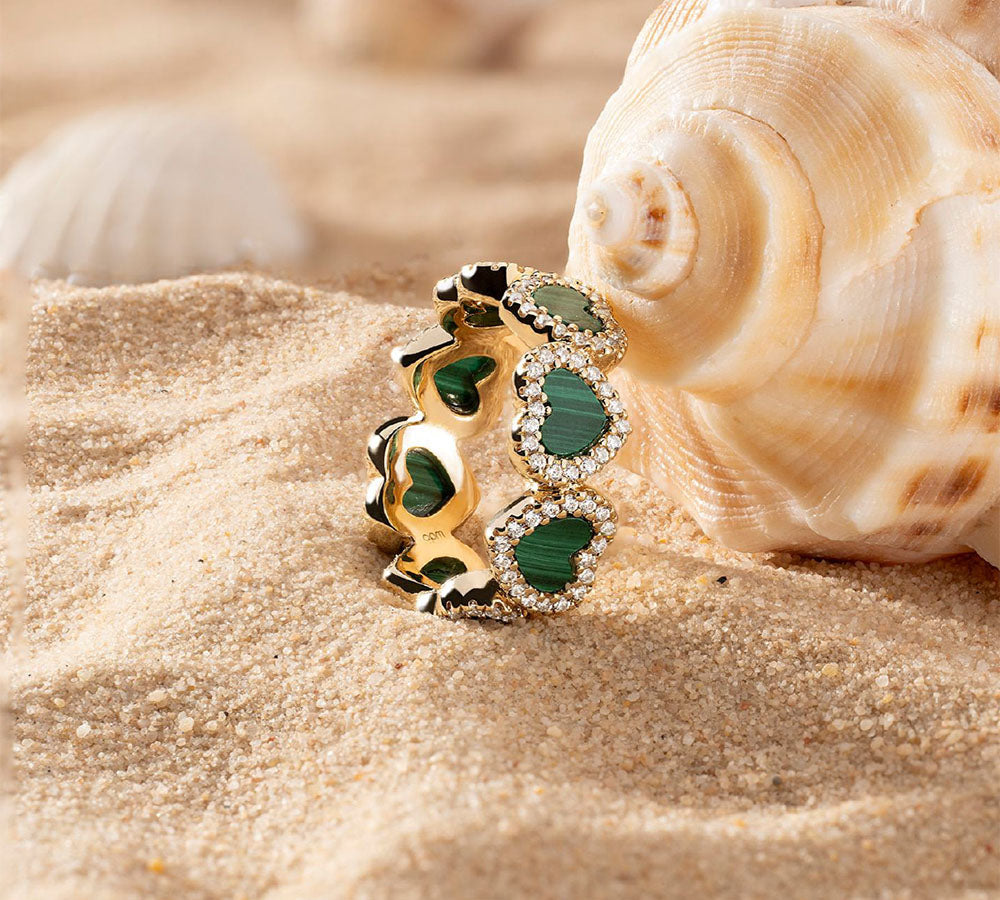 孔雀石爱心戒指