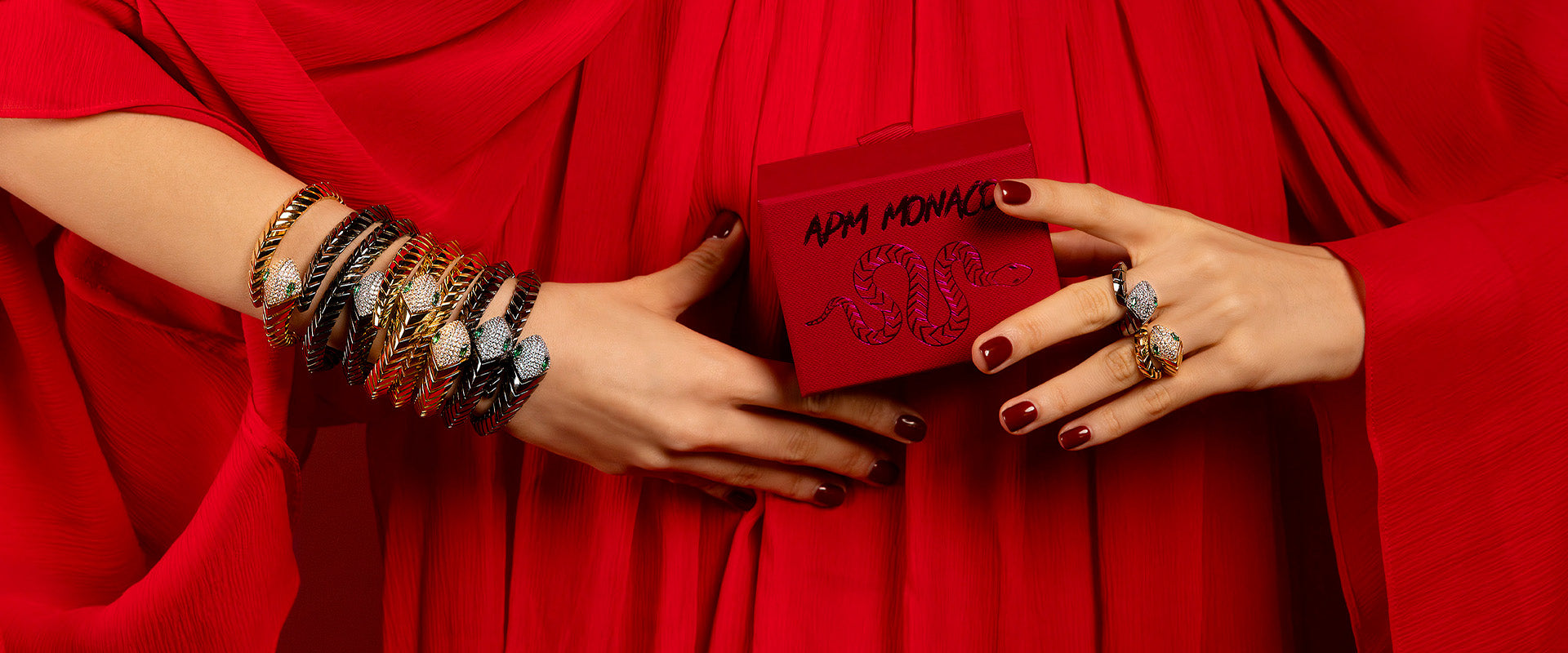 Few motifs have endured in jewellery quite like the snake. A symbol of transformation and eternal renewal, it has been reimagined repeatedly and yet never loses its impact. APM Monaco takes this classic inspiration and crafts a collection of snake jewellery to empower the wearer of each piece. Whether wrapped around the finger, coiling along the ear, or elegantly framing the wrist, snake rings, earrings, cuffs and chokers are crafted to make an iconic statement.