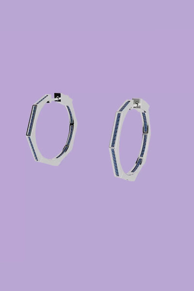 蓝色几何密镶圈形耳环