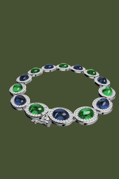 密镶鲜绿与宝蓝双色宝石,在优雅不羁间取得精妙平衡。当光线流转,宝石便绽放出如地中海波光般的粼粼璀璨。
