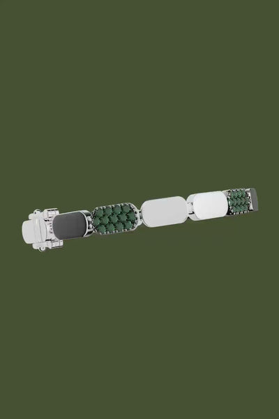 璀璨绿宝石与手链设计相得益彰,碰撞出吸睛对比效果。