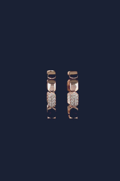 这款耳环由 APM 合金和 18K镀玫瑰金制成,并微镶了白色合成立方氧化锆。