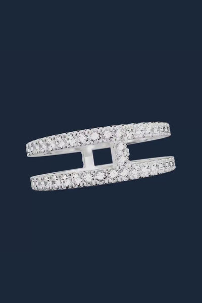 这款戒指采用纯银手工制成,并密镶了白色合成立方氧化锆。