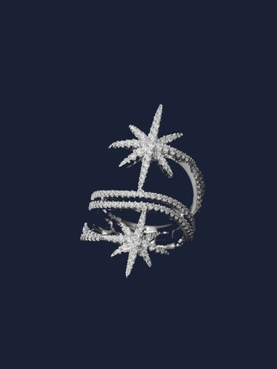 这款美丽的双流星戒指以地中海满天星宿的天空为灵感。流星系列采用经典和永恒的珠宝设计。