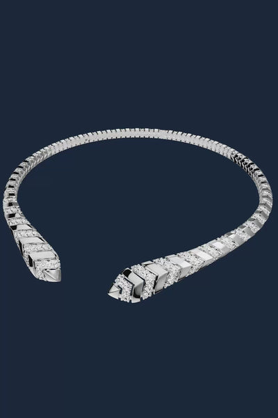 这款密镶工艺项圈,为每个造型增添一抹亮色。其设计灵感源自法国南部滨海步道上摇曳的棕榈叶,将南法风情凝练于珠宝线条之中。