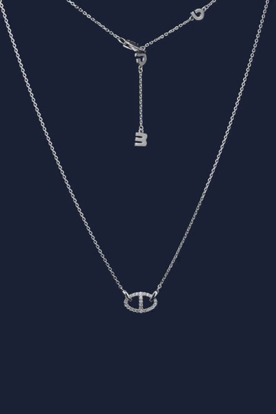 这款项链采用925银制成,微镶以白色合成立方氧化锆。