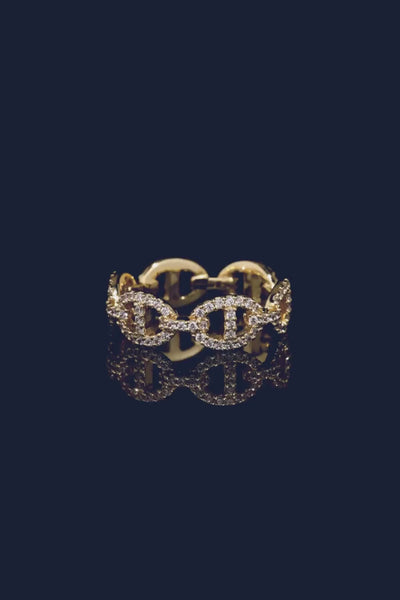 这款戒指采用APM合金制成,表面镀有18k金。微镶以白色合成立方氧化锆。