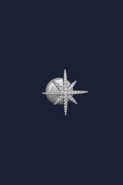 这款耳钉采用纯银手工制成,微镶以白色合成立方氧化锆,细节点缀人工养殖淡水珍珠。
