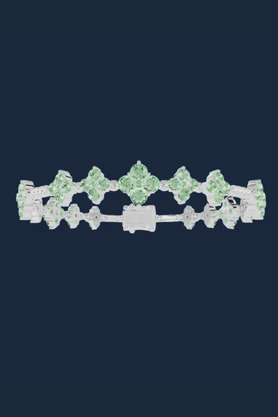 这款手链采用柔和的淡绿色调,折射出春天清透明亮的色彩。手工镶嵌的耳环,尽显优雅与现代之感。其设计能让光线穿透,营造出璀璨夺目的效果。