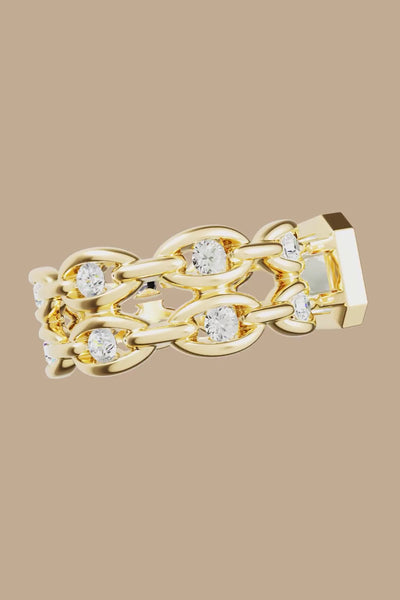 这款戒指以密镶细节诠释出本系列的金色调,经典的设计风格,易于佩戴且适配多种场合。宝石的镶嵌方式让光线穿透,营造闪耀魅力。