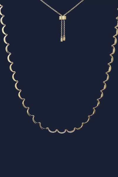 这款项链由 APM合金和 18K镀金制成,并微镶了白色合成立方氧化锆。