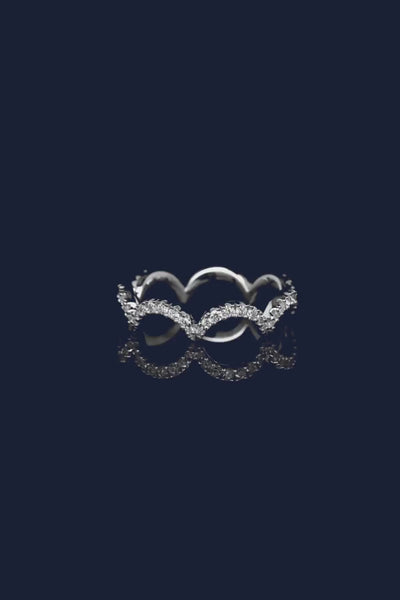 密镶波浪形银色戒指