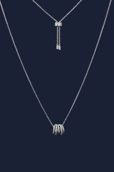 白色多圈可调节项链 - 银白色